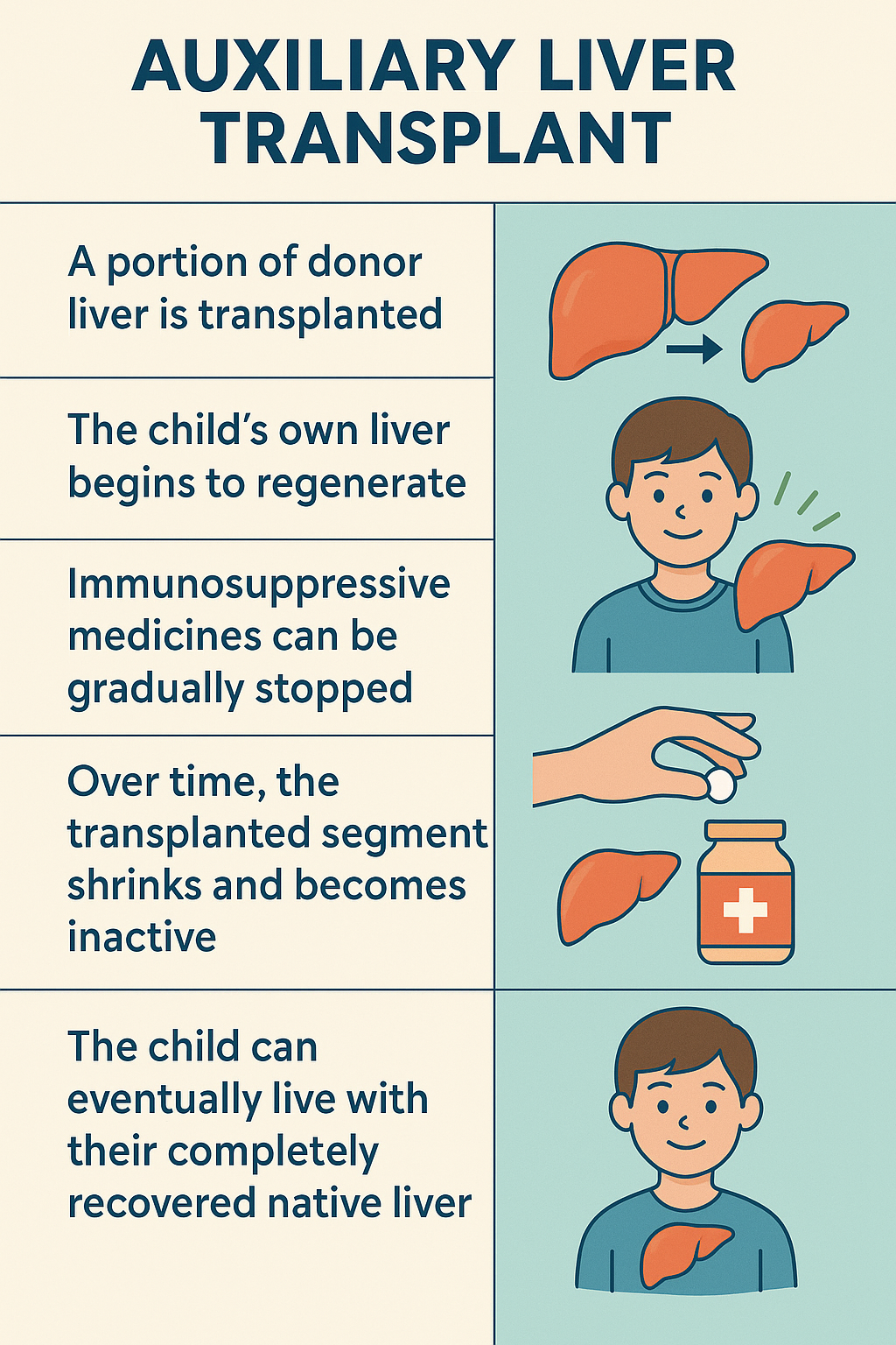 ∙The child’s native liver regenerates after recovery